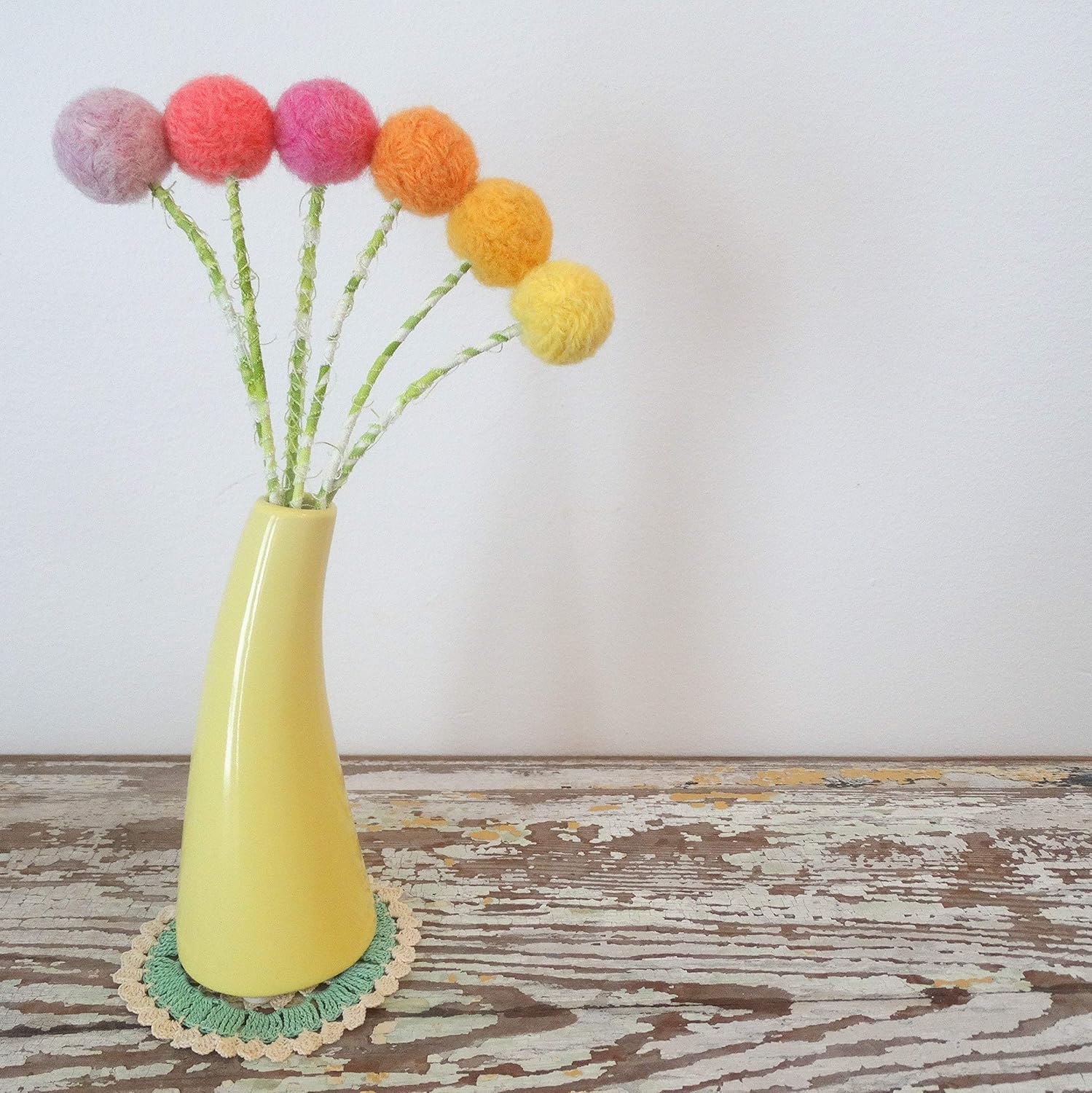 I think it looks like hundreds of little yellow pom poms. The yellow or green pom pom button flowers have a classic bloom with many petals and no center. Pom pom flowers yarn flowers crochet flowers pom pom centerpieces nursing home crafts pom pom crafts yarn crafts diy crafts how to make a if you're not familiar with the craspedia flower, they're known for their bright yellow hues and long, thin stems. Shop our selection of pom pom at home with free shipping (always!). 3 sunflower yellow 3 bright pink 3 bold orange 3 coral the wire stems are very fine, covered in cotton thread in emerald green.